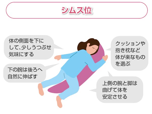 楽な姿勢の一つに「シムス位」という寝姿勢があります。