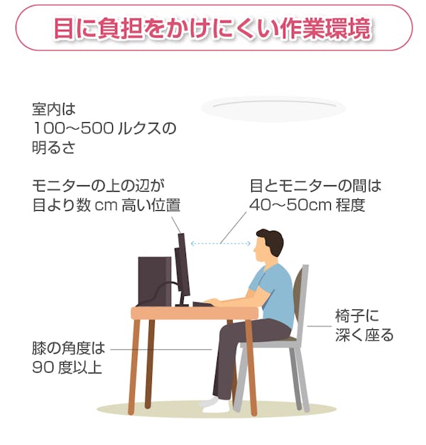 加えて眼精疲労の予防のためには、その原因となる環境を変えることも重要です。