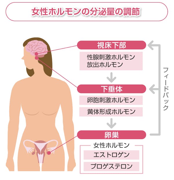女性ホルモンの分泌は、脳の視床下部から分泌されるホルモンによって調節されています。