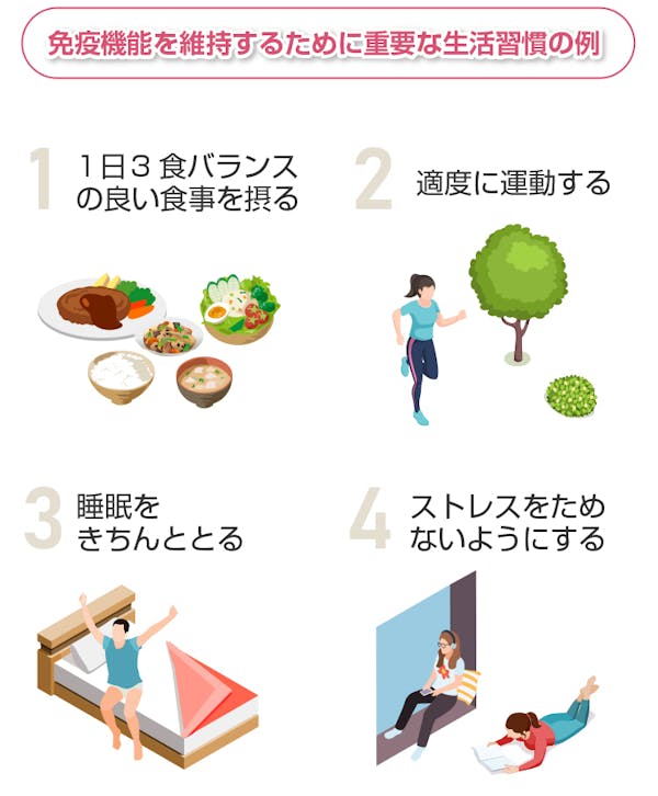 免疫のはたらきを維持するためには、日頃から規則正しい生活を送ることが重要だといえるでしょう。